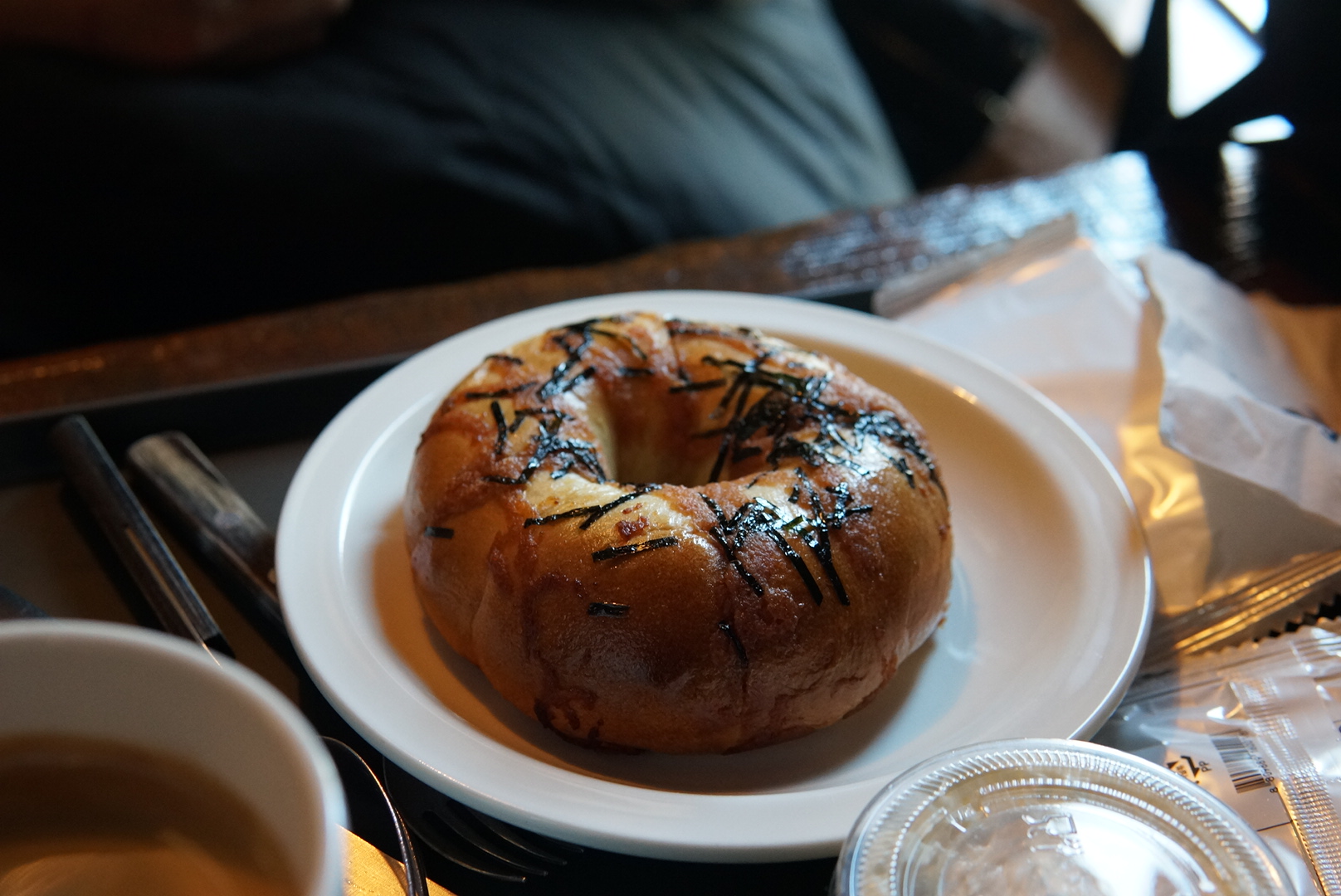 명란이 듬뿍 들어간 베이글은 생각보다 짜지 않고 크림치즈, 커피와도 조화롭게 어울렸습니다.